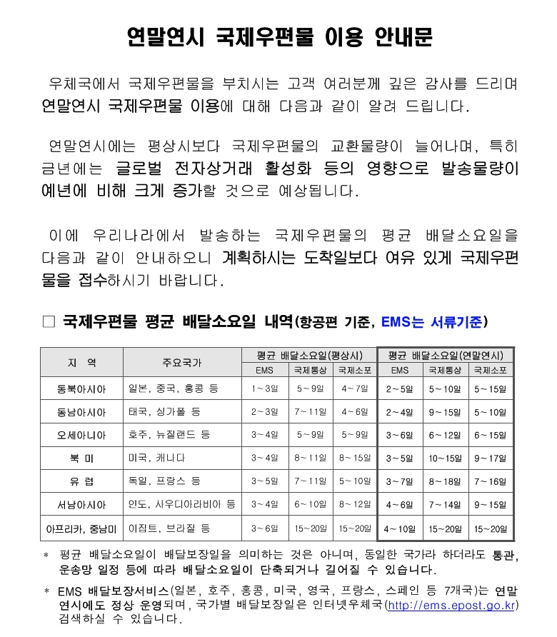 - 기간 : 12.8~별도 통보시까지(EMS프리미엄 제외)