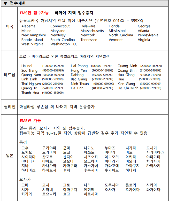2. 또한 EMS프리미엄도 현재 접수 진행하지 않습니다.