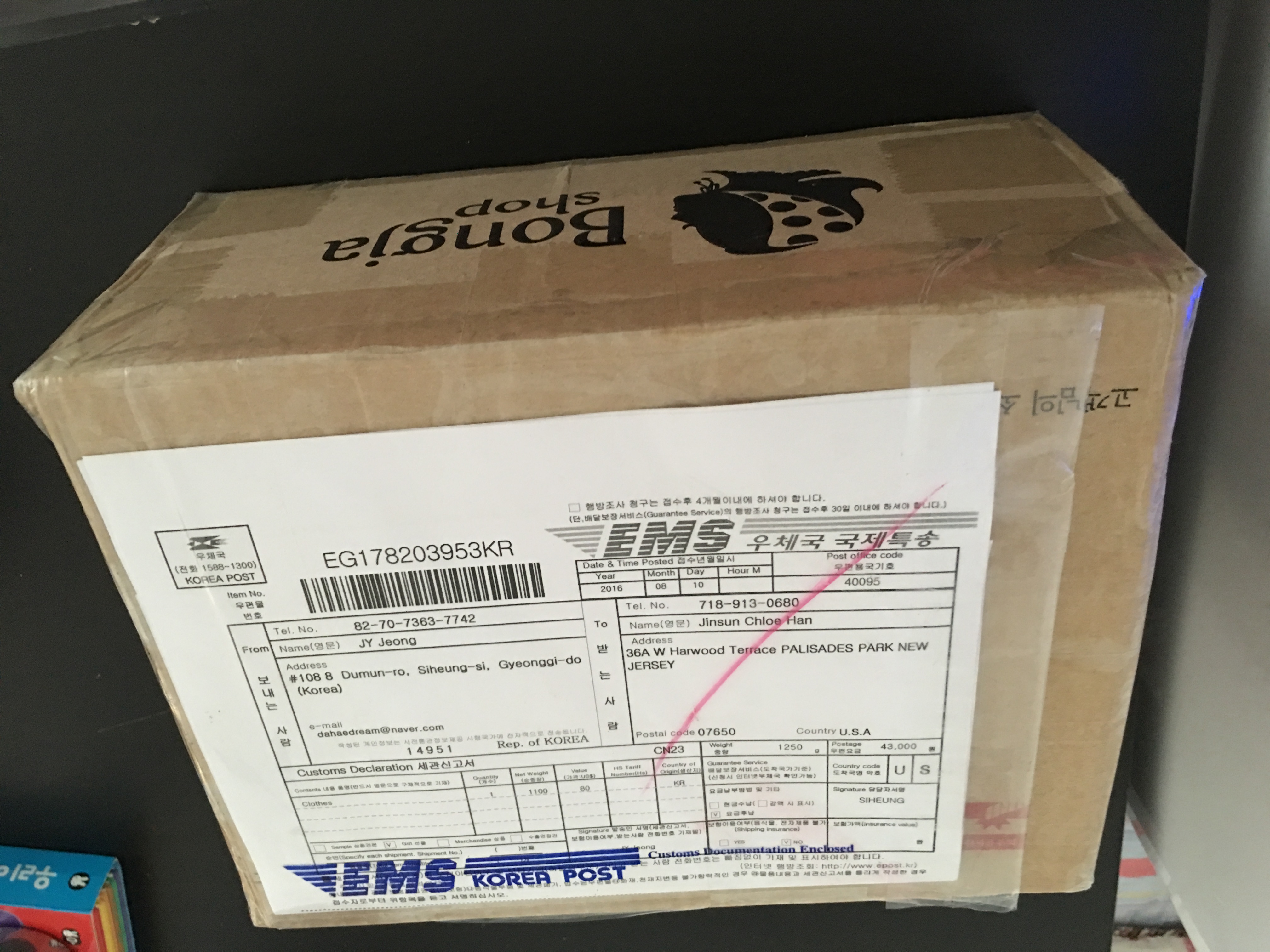 토요일 아침에 워터파크를 가야되서 무리하게 제가 배송대행을 금요일까지 부탁을 했는데